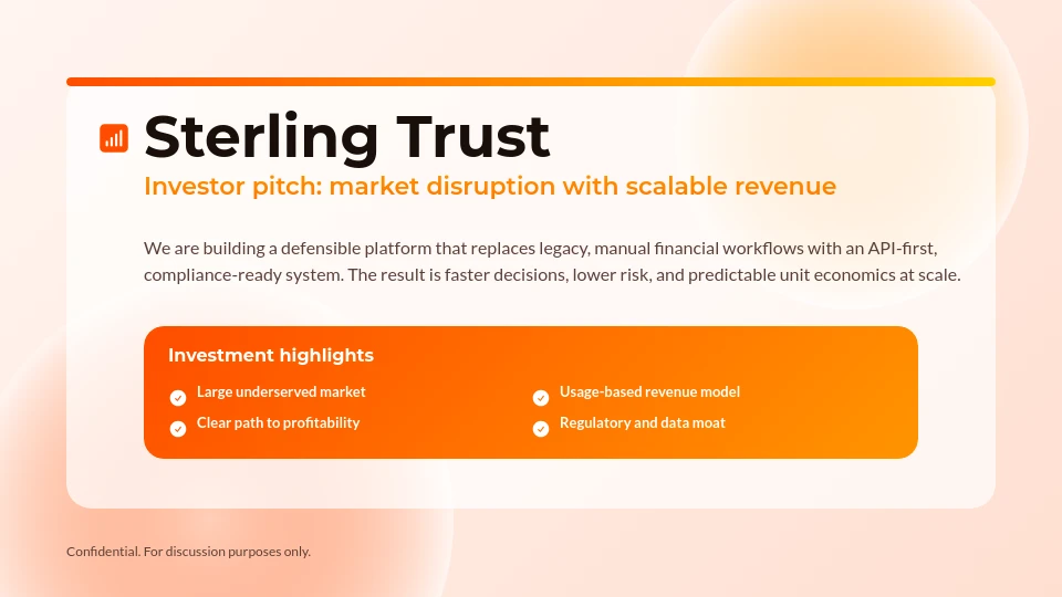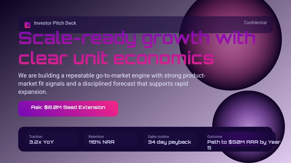 Szablony Pitch Deck to niezbędne narzędzia, które pomagają startupom, przedsiębiorcom i profesjonalistom tworzyć przekonujące prezentacje w celu zabezpieczenia finansowania i partnerstw. Te szablony oferują eleganckie wzory, czytelne układy i edytowalne sekcje, aby wyróżnić kluczowe wskaźniki biznesowe, cele i strategie. Dzięki personalizacji opartej na AI użytkownicy mogą szybko dostosować treść do swojej unikalnej historii i odbiorców. Idealne do prezentacji dla inwestorów, wprowadzania produktów i spotkań strategicznych, szablony NextDocs upraszczają proces tworzenia, maksymalizując efekt.