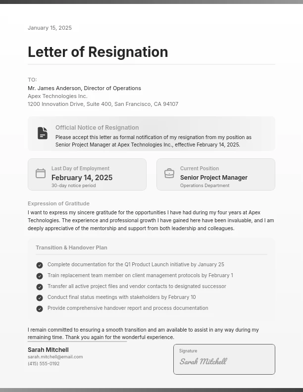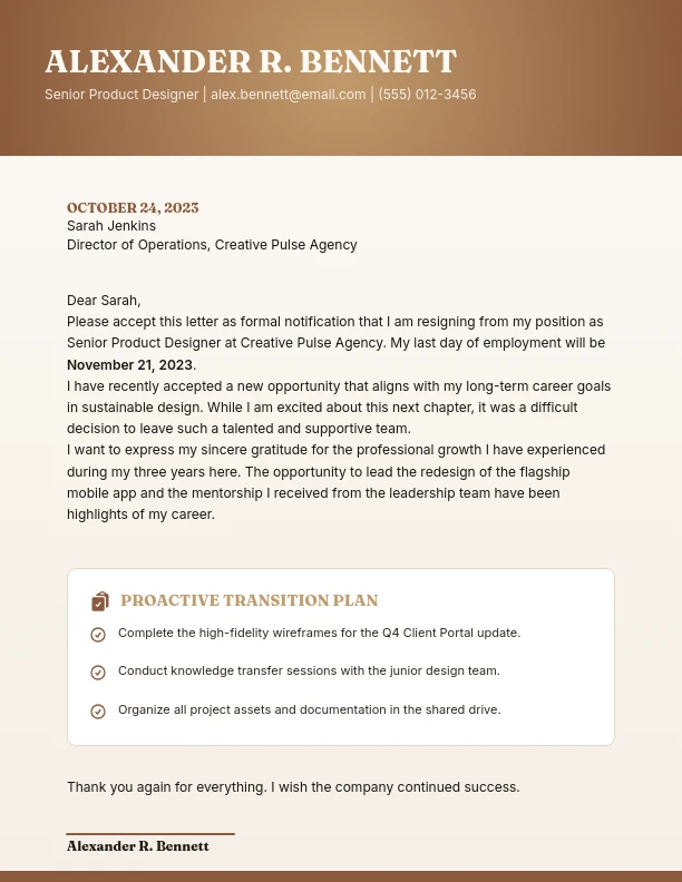 Professional Resignation with Transition Plan