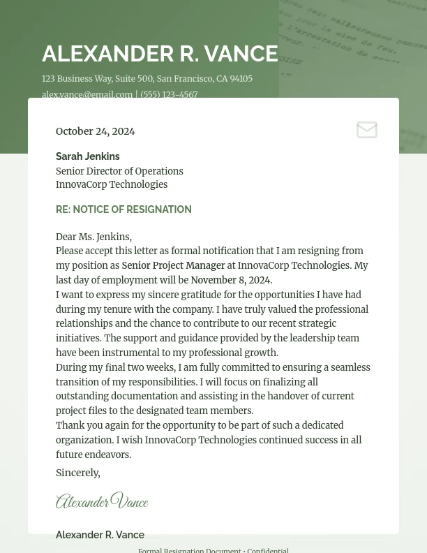 Formal Professional Resignation Notice