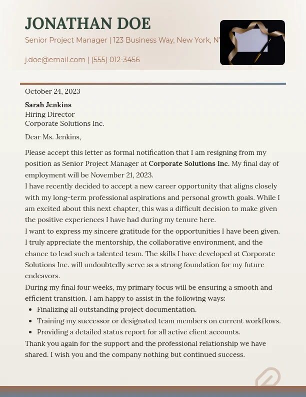 Formal Career Move Resignation Notice