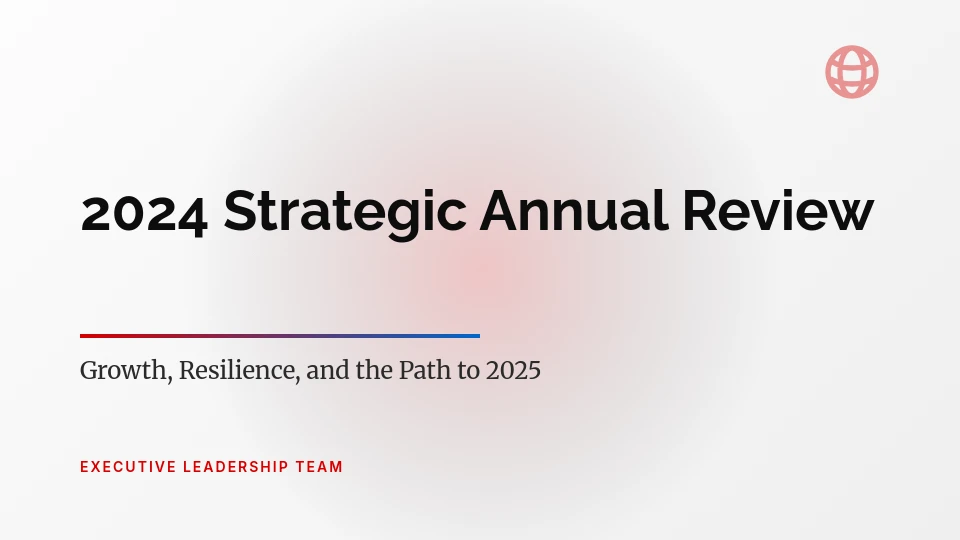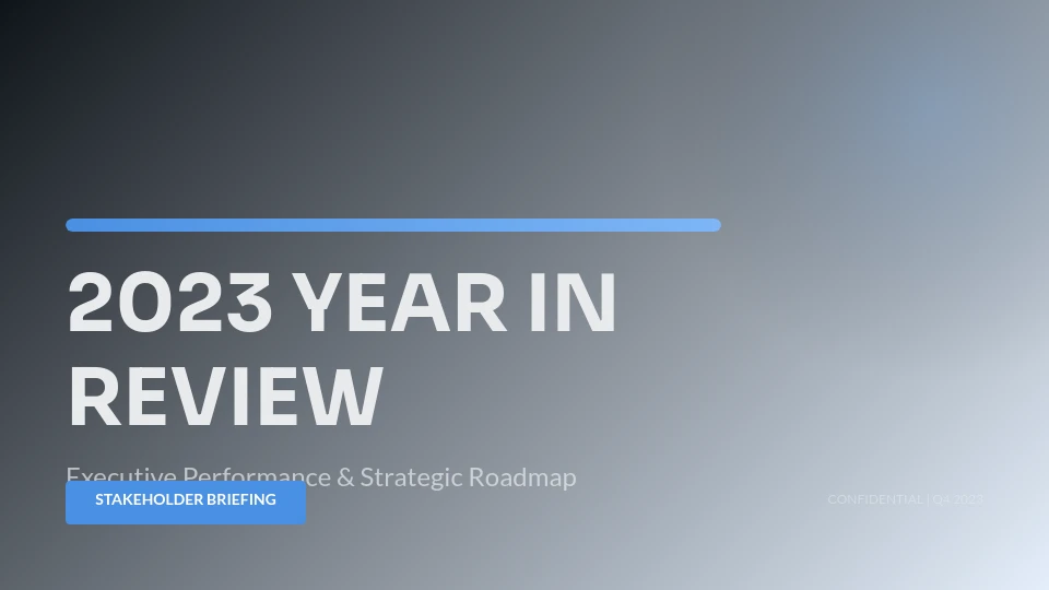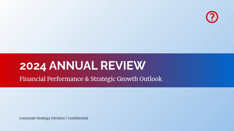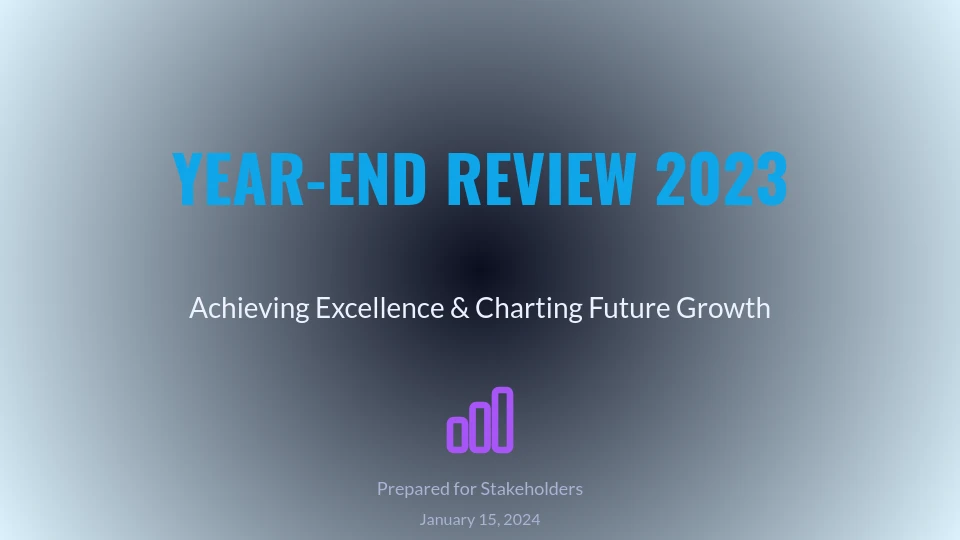 เทมเพลตการนำเสนอประจำปีของเราได้รับการออกแบบโดยเฉพาะเพื่อแสดงความสำเร็จรายปี ข้อมูลทางการเงิน และแผนกลยุทธ์อย่างชัดเจนและเป็นมืออาชีพ ซึ่งเหมาะสำหรับผู้นำธุรกิจ ผู้จัดการ และนักวิเคราะห์การเงิน โดยประกอบด้วยองค์ประกอบสำคัญเช่น แผนภูมิ ไทม์ไลน์ และบทสรุปผู้บริหารเพื่อเน้นผลการดำเนินงานอย่างมีประสิทธิภาพ เทมเพลตนี้ช่วยให้การสร้างง่ายขึ้นและประหยัดเวลา ด้วยเลย์เอาต์ที่เตรียมไว้ล่วงหน้าสำหรับรายงานประจำปี ซึ่งสนับสนุนการตัดสินใจและการสื่อสารกับผู้ถือหุ้นอย่างมีประสิทธิภาพ แตกต่างจากเทมเพลตทั่วไปที่เน้นข้อมูลรายปีอย่างเป็นระบบ