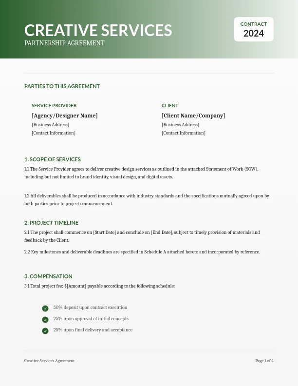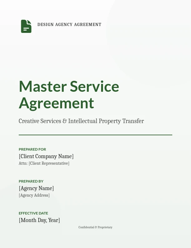 Tasarım MSA Şablonu, tasarım profesyonelleri ve ajanslarının benzersiz ihtiyaçlarına göre özel olarak hazırlanmıştır. Proje teslimatları, fikri mülkiyet hakları ve onay süreçlerini net şekilde belirler, tasarımcılar ve müşteriler arasında sorunsuz işbirliği sağlar. Grafik, web ve ürün tasarımı projeleri için uygundur, kapsam kaymasını önler ve yaratıcı varlıkları korur. Ana unsurlar arasında detaylı tasarım aşamaları, ödeme kilometre taşları ve gizlilik maddeleri bulunur. Bu şablon, yasal riskleri azaltan ve net iletişimi teşvik eden hazır yapı sağlar.