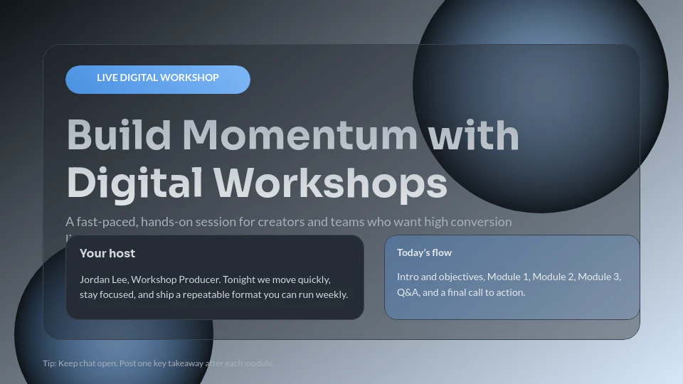 Webinar Sunum Şablonumuz, canlı çevrimiçi oturumlar için özel olarak tasarlanmıştır, Q&A bölümleri, anketler ve sorunsuz slayt geçişleri gibi etkileşimli unsurlar içerir, izleyiciyi meşgul tutar. Eğitmenler, pazarlamacılar ve işletme profesyonelleri için, sanal atölyeler, ürün tanıtımları veya eğitim oturumları düzenlemek amacıyla idealdir. Bu şablon, gündem, konuşmacı tanıtımları ve harekete geçirici mesajlar için net düzenler içerir, tasarım ve yapı üzerinde zaman kazandırır. Genel sunum şablonlarından farklı olarak, sanal etkileşime ve akıcı içerik akışına odaklanır, katılımcı bağlılığını ve etkileşimini en üst düzeye çıkarır.