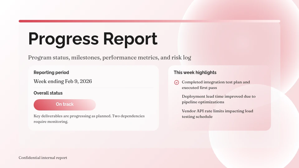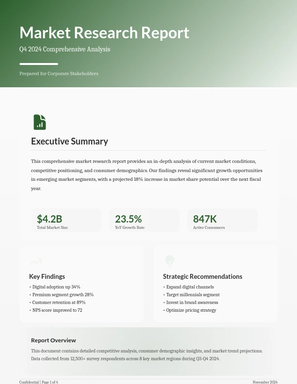 NextDocs rapor şablonları, profesyonellerin net, öz ve görsel olarak çekici raporlar hızlıca hazırlamasına yardımcı olmak için tasarlanmıştır. İş analistleri, proje yöneticileri ve danışmanlar için idealdir; bu şablonlar, her sektöre uygun yapılandırılmış düzenler ve özelleştirilebilir bölümler sunar. Yapay zeka destekli özelleştirme ile kullanıcılar, içeriği ve biçimlendirmeyi kolayca ihtiyaçlarına göre uyarlayabilir, zaman tasarrufu sağlar ve doğruluğu artırır. Finansal raporlar, proje güncellemeleri ve piyasa analizleri gibi kullanım alanları mevcuttur. Verimli rapor oluşturma deneyimi, iletişiminizi ve karar verme süreçlerinizi yükseltir.