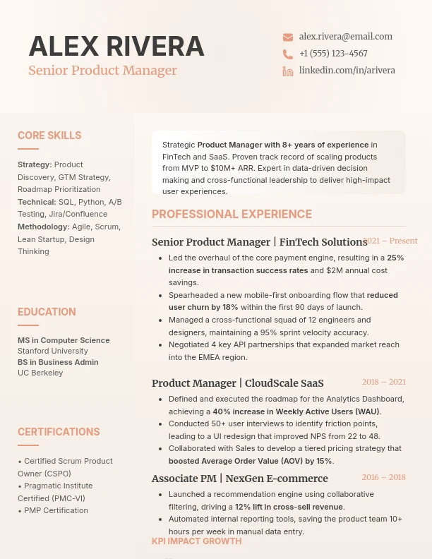Modern Technical Product Manager Resume