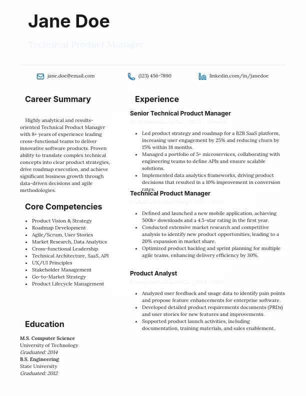 Strategic Technical Product Manager Resume