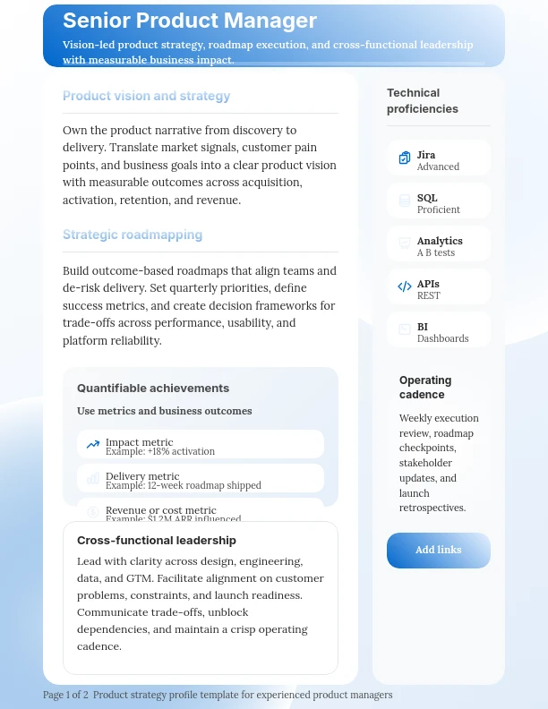 Data-Driven Senior Product Manager Profile
