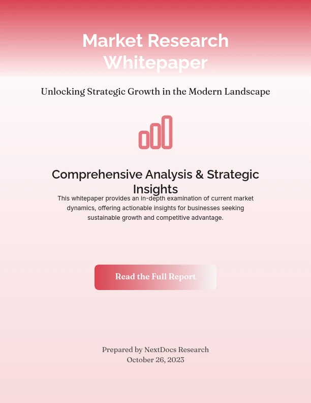 Piyasa Araştırması Beyaz Kağıdı Şablonumuz, piyasa trendleri, tüketici davranışları ve rekabet ortamlarının kapsamlı analizini sunmak isteyen profesyoneller için özel olarak tasarlanmıştır. Pazarlamacılar, analistler ve iş stratejistleri için idealdir; veri görselleştirme, metodoloji taslakları ve uygulanabilir içgörüler gibi temel bölümleri içerir. Genel beyaz kağıtlardan farklı olarak, ampirik araştırma ve sektör özel ölçütlerine odaklanır, karar verme süreçlerini destekler. Hazır yapı sayesinde zaman kazandırır ve netlik, profesyonellik ve etkili hikaye anlatımı sağlar.