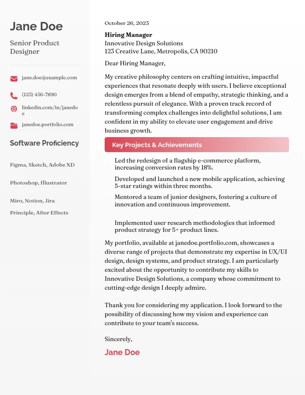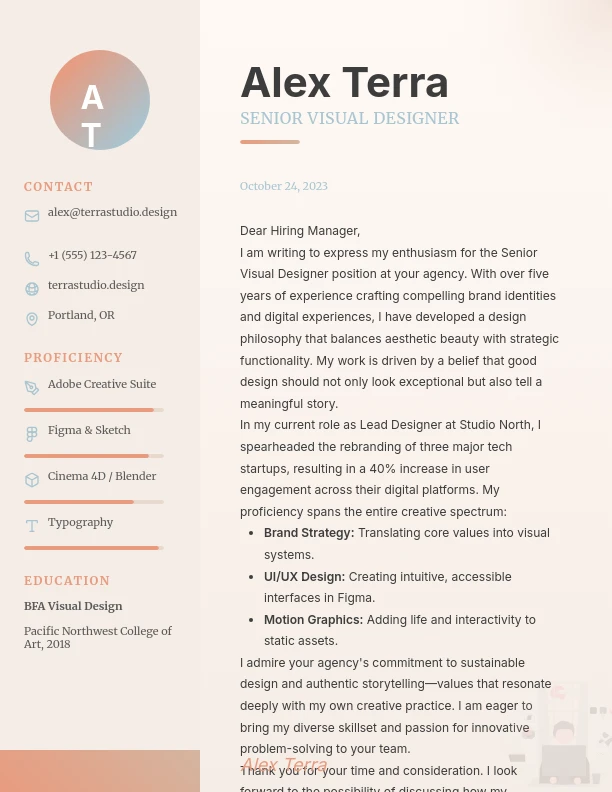 Creative Visual Designer Career Letter