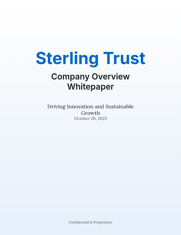 Mẫu Whitepaper Tổng Quan Công Ty của chúng tôi được thiết kế đặc biệt để trình bày một bức tranh toàn diện về doanh nghiệp của bạn, bao gồm sứ mệnh, lịch sử, sản phẩm và vị thế thị trường. Phù hợp cho các startup muốn thu hút nhà đầu tư hoặc các công ty đã thành lập muốn làm mới câu chuyện thương hiệu, mẫu này giúp quá trình sáng tạo trở nên dễ dàng hơn với các phần đã được cấu trúc sẵn. Khác với whitepapers chung chung, nó tập trung vào các câu chuyện riêng của công ty và các điểm khác biệt chính, tiết kiệm thời gian và đảm bảo rõ ràng, chuyên nghiệp. Các yếu tố chính bao gồm tiểu sử lãnh đạo, giá trị cốt lõi, mốc quan trọng và lợi thế cạnh tranh, là công cụ hoàn hảo cho marketing, gây quỹ hoặc các đối tác chiến lược.